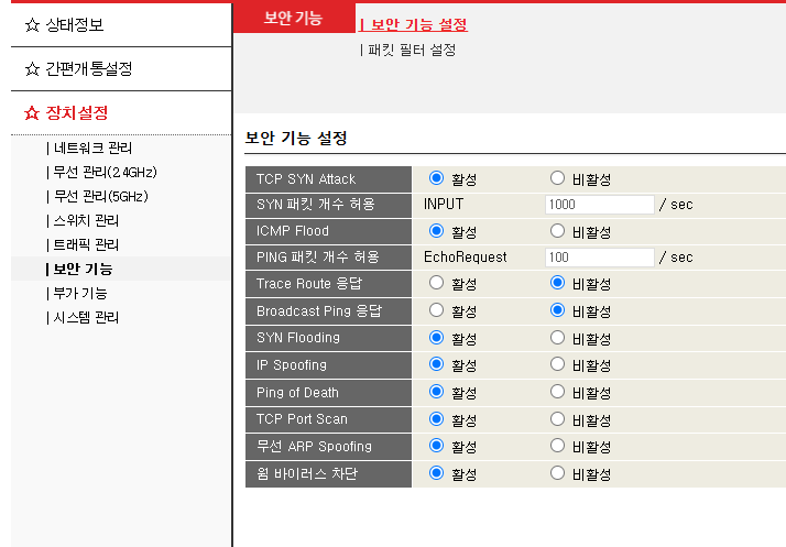 위 사진처럼 보안기능을 사용자의 필요에 따라 설정하거나 해제해 줄 수 있다.