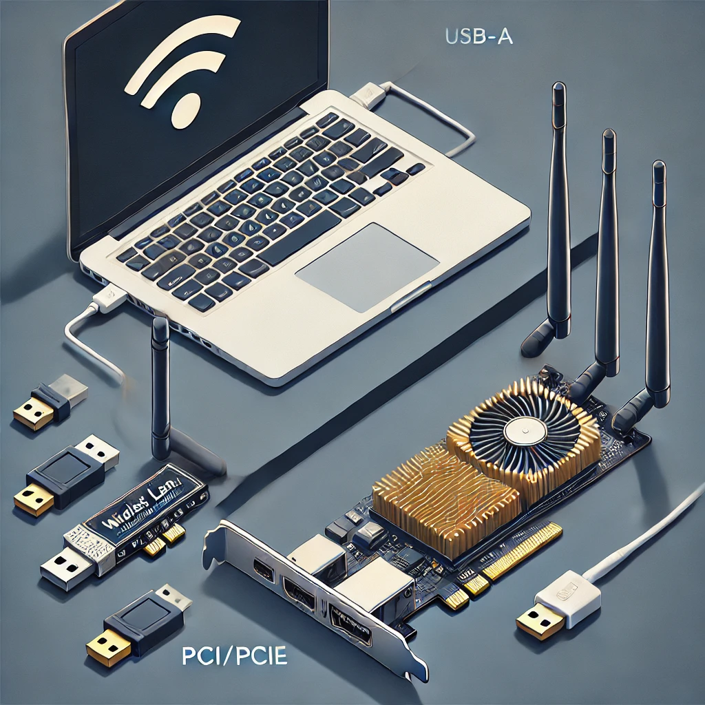 무선랜카드는 Wi-Fi를 사용할 수 있게끔 해주는 장비인데 보통 Wi-Fi연결이 불가능한 데스크톱 PC에 USB-A형 랜카드를 장착하는 방식이나 PCl/PCle 방식의 랜카드를 메인보드에 장착해 주는 방식으로 사용할 수 있다.